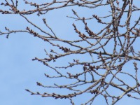 紅梅やたんぽぽが咲き桜の蕾も膨らみ始めており