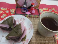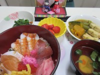 昼食に海鮮ちらし寿司、おやつに桜餅を召し上がっていただき