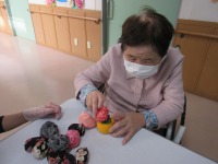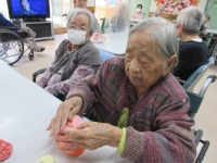 今日のレクはお手玉を使って
