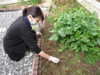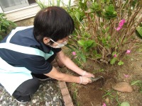 中庭の草むしりと花壇の手入れをしていると