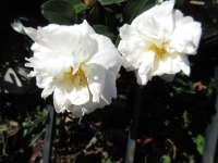 つぼみがたくさんついている八重のさざんかからは