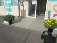 スタッフのご家族より立派な菊の花をいただき玄関先に飾りました。