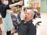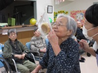 いつもはおしとやかな入居者様もかごを目掛けて一心不乱に