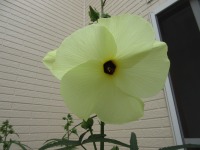 中庭のトロロアオイの花が次から次へと咲いています。