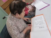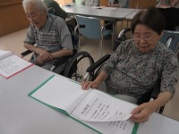 歌詞カードを見ながら皆さん一生懸命に唄われ
