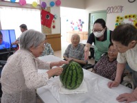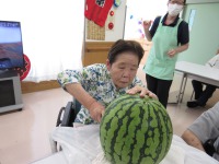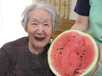 入居者様がビックリするほど大きいスイカとまずは記念撮影!!
