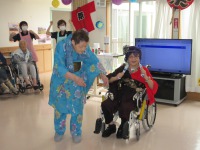 他の入居者様やスタッフからたくさんの拍手とかけ声がかかる中