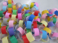 折り紙を使い色とりどりの飾りを作っています☆
