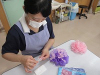 施設内に飾る紫陽花もお花紙を使って製作中です。