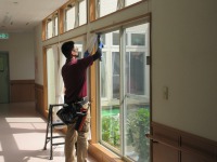 本日、清掃業者さんによる窓ガラスとエアコンフィルターの