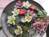 クリスマスローズや椿など色とりどりの花を水に浮かべ