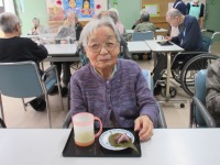 ひな祭りの歌を唄いみんなで作った壁飾りの前で記念写真を撮り