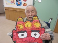 施設では入居者様とスタッフで豆まきを行い