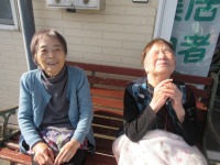 昼食後に入居者様がベンチに座り