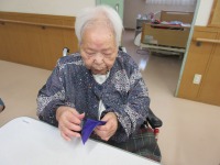 入居者様と指先のリハビリを兼ねて鶴を折りました。