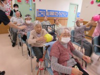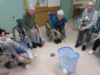 皆さん両手に玉を持ち真剣な表情でかごめがけて投げていき