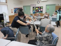 理学療法士の笠原さんと一緒にレクを行うために準備を始めました。