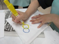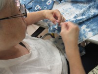 先日の藍染教室で作った手ぬぐいの端がほつれないよう