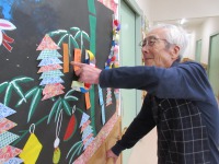 実際に輪ゴムで縛りながらお好みの柄を作る作業をしました。
