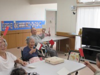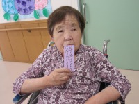 今日は入居者様に短冊へ願い事を書き入れていただき