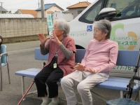 お天気の良い日は外に出て体操を行います。