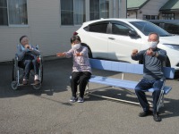 眩しいくらいの日差しを浴びて入居者様の笑顔も