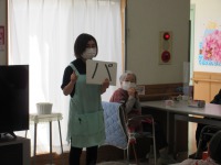 今日の口腔体操は新入社員の梅澤さんが担当しました。