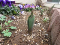 チューリップの芽が日に日に大きくなっています。