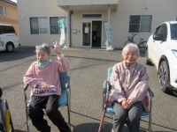 暖かい日差しを受け春を感じていらっしゃる入居者様たちは