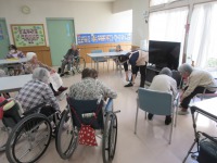 今日もおやつの前にみんな揃ってリハビリ体操です。