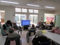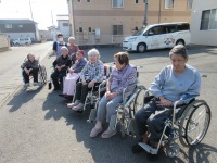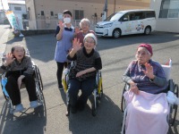 昼食後に入居者様と玄関前で日光浴を楽しみました。