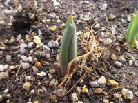 12月に植えたチューリップの球根から芽が出始めました。