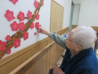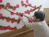 入居者様と一緒に作った梅の花を