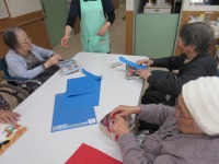 2月の壁飾りを入居者様と作り始めました。