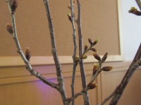 玄関先に生けてある桜がほころび始めました。