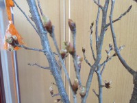 玄関先にお正月の飾りと一緒にさくらを生けました。