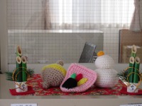 毛糸でできたお供えやこまが飾られ