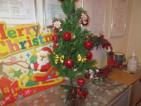 今日は玄関にクリスマスツリーと手作りのリースを飾り