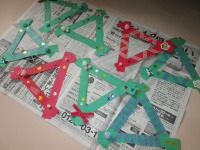 入居者様と一緒に色紙を使ってリース作りを始めました。