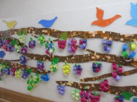 ホールの飾りが夏から秋へ変わっていこうとしています。