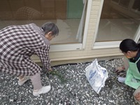 入居者様と一緒に 雑草を抜いたり プランターにお花を植えたりしました。