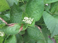 中庭の紫陽花のつぼみが膨らんできました。