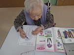 今日は、入居者様にぬり絵のお手伝いをお願いしました。