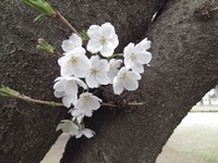 雪の重みでせっかく咲いた花もお辞儀をしていました。