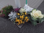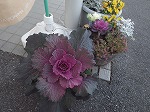 施設の玄関に大きく立派なハボタンを飾りました。