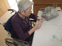 毛糸とかぎ針を持って来て コースターを編んでくれました。