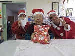ビンゴ大会でビンゴが出ると可愛いサンタさんからプレゼントを貰い記念撮影をしました。