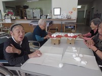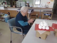 入居者様に紙粘土で飾り用のお団子を作って頂きました。