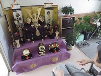 本日 玄関に五月人形を飾りました