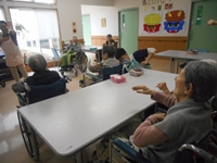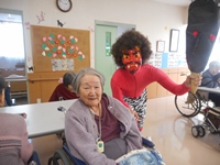 施設でも、赤鬼が出たので 入居者様と一緒に 豆まきをして 鬼を追い払いました。